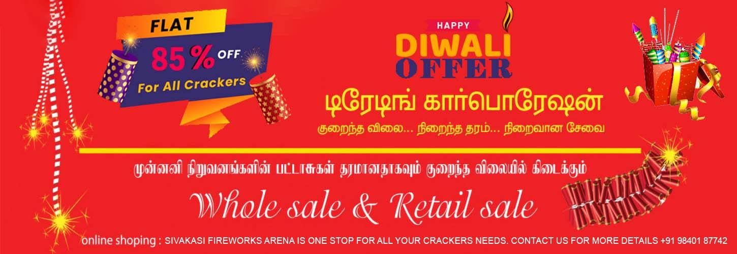 Our motto is to make every festival celebration bright and safe.This, we bring out with our wide range of firecrackers. With over 200 varieties of crackers developed and marketed every year, we are among the most sought brands in the Sivakasi region and around the country. Our products are known for their safety and we take great efforts to ensure that all our orders are delivered in a standard time frame with an economical pricing..